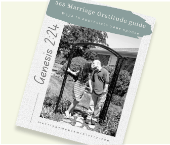 Grab your 365-day FREE Marriage Gratitude Guide. This guide captures 365 days of ideas that you can use to appreciate your spouse. Marriages need encouragement